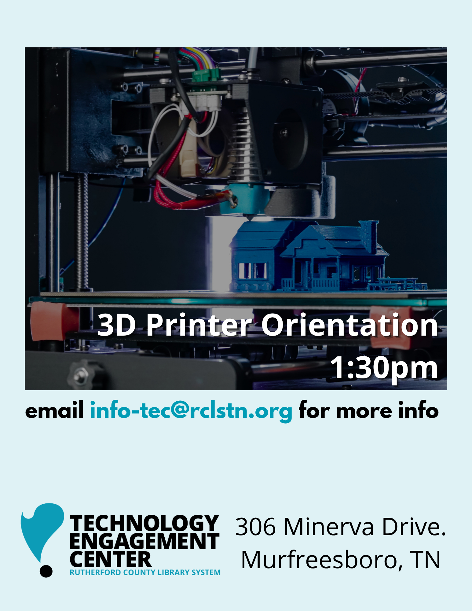 Come learn how to use the 3D printers at the TEC! This orientation is required for the use of the 3D printers at the TEC.