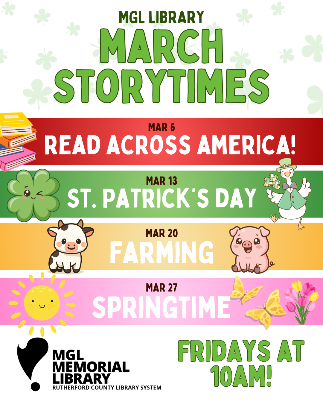 Join us for stories, songs, and a craft every Friday morning at 10 am in MGL’s STEAM Room! All ages are welcome.