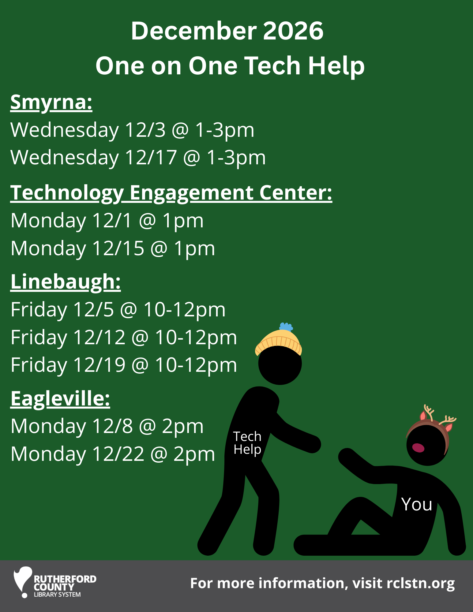 Need some help with your smart phone, laptop, or resume? Come to One on One Tech Help! First come, first served.