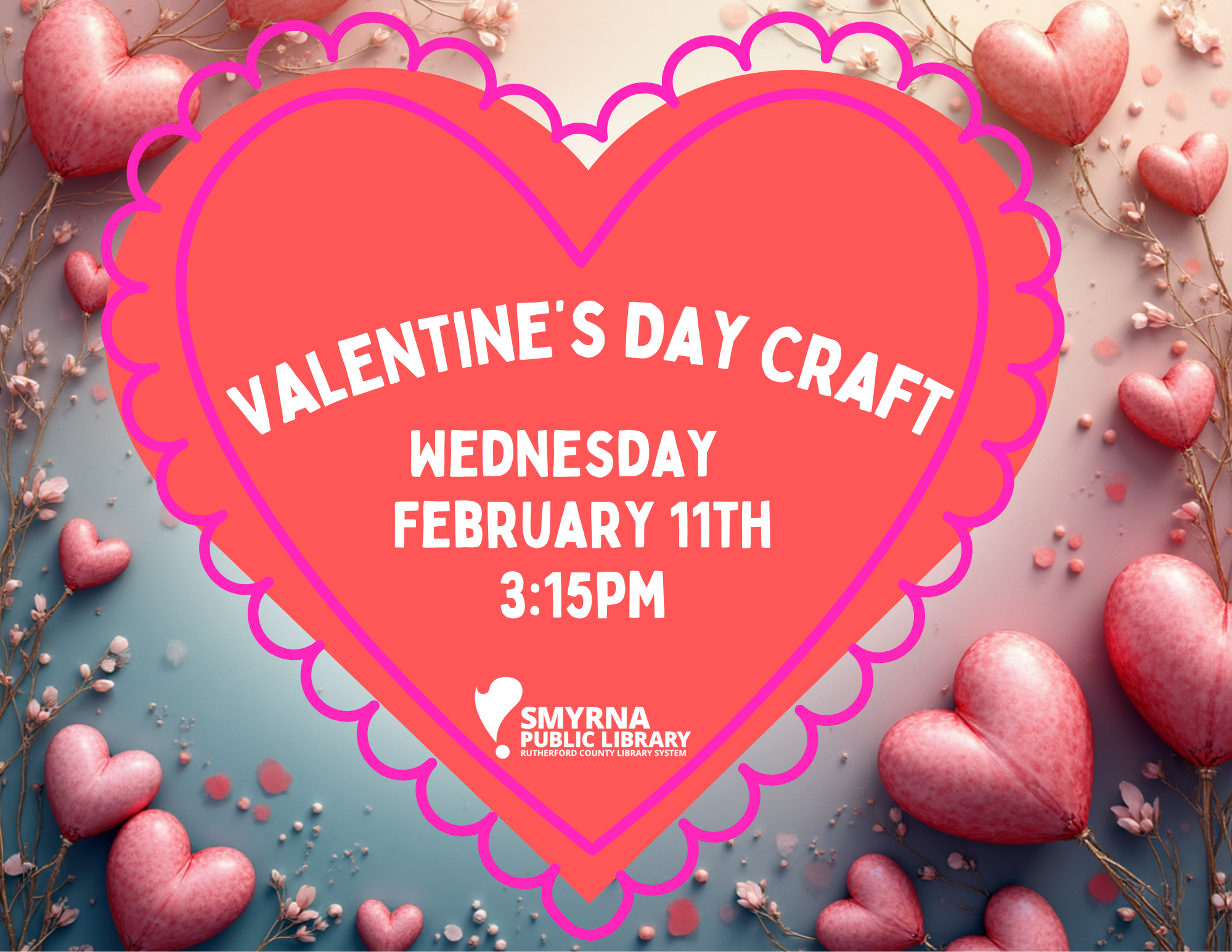 Join us at Smyrna Public Library for our Valentine’s Craft February 11th @ 3:15pm.