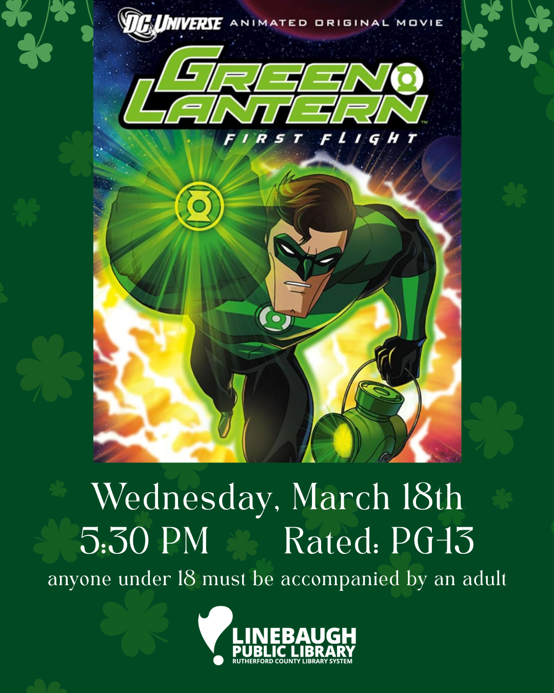 Linebaugh invites you to an action packed evening at the library with a viewing of Green Lantern: First Flight! This event is FREE and open to the public, though all...