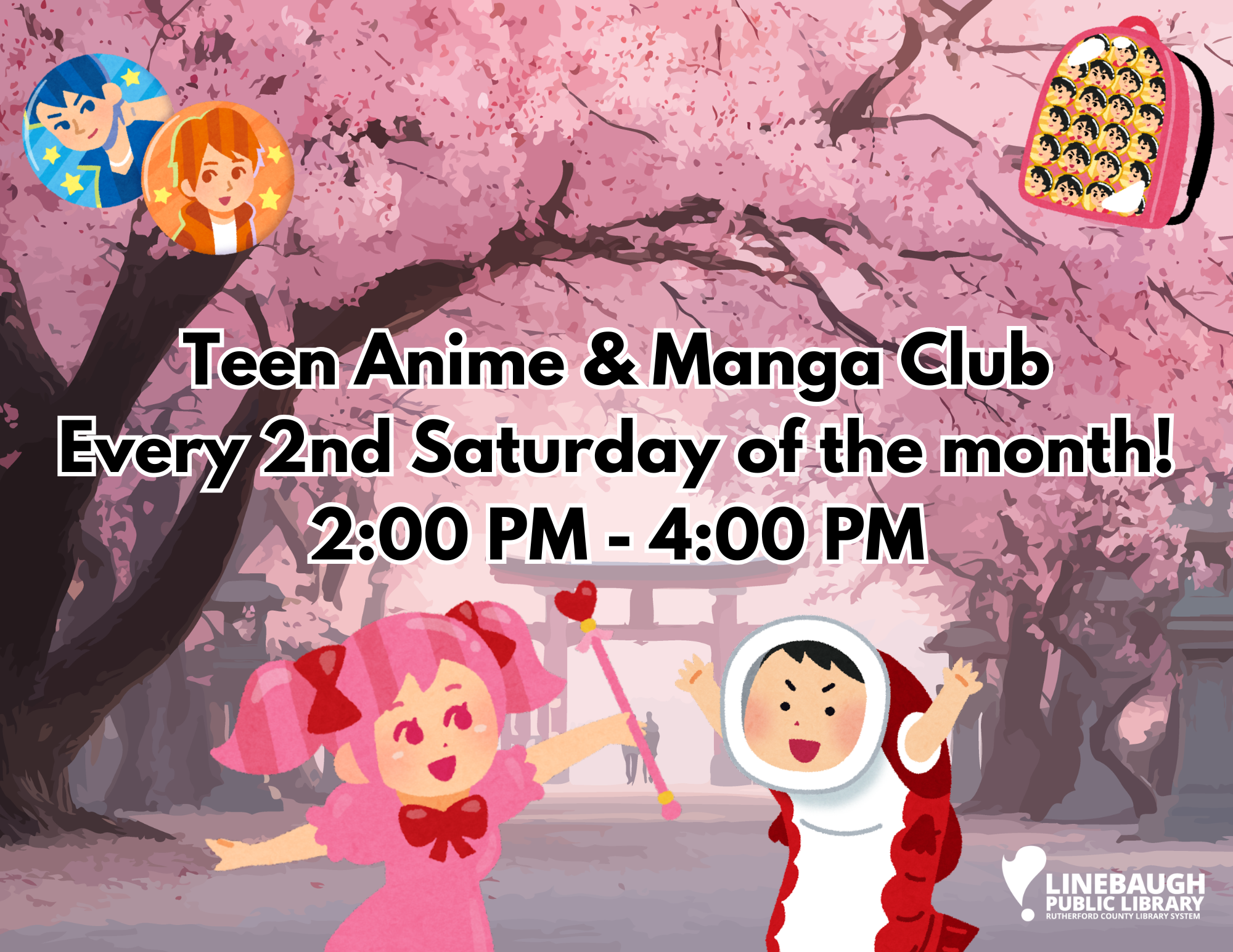 Join us at Linebaugh every month for a discussion of our current favorite anime and manga! We'll be showing an anime movie once a month this summer!