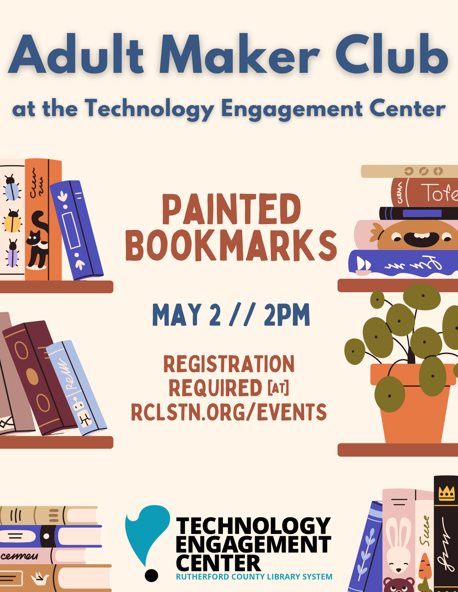 Looking for a relaxing and creative way to spend an afternoon? Join us at the library for a hands-on adult craft program where we’ll be painting wooden bookmarks! Whether you’re an experienced artist or just looking to try something new, this program is all about unwinding, expressing yourself, and creating something uniquely yours. All supplies...
