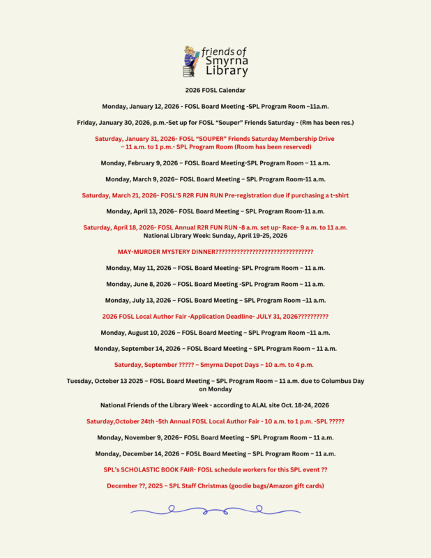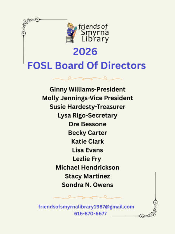 Contact FOSL via email at friendsofsmyrnalibrary1987@gmail.com